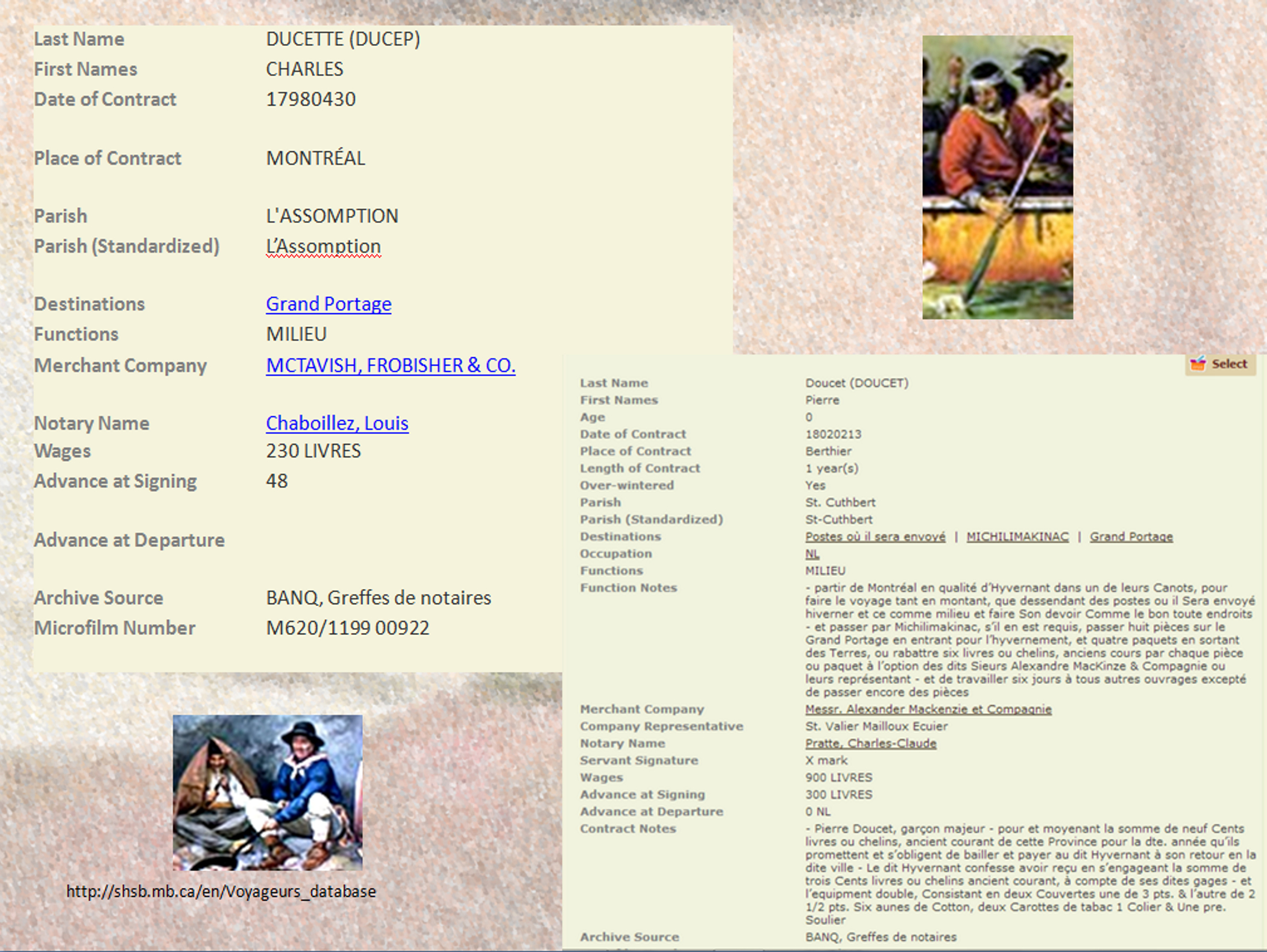 Centre du patrimoine, Voyageurs Database.