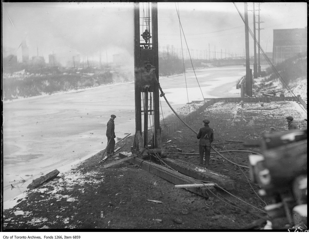 Viaduct work, driving poles for new Don bridge. – December 24, 1925