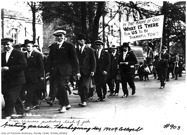 Previous Image Next Image What in hell do we have to hope for War veterans protesting lack of work, c. 1919, City of Toronto Archives.