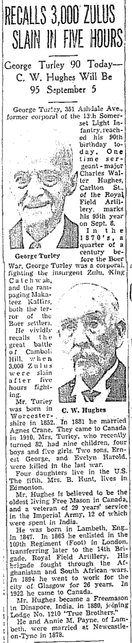 From the Days when people truly believed that the sun would never set on the British Empire and other silly things.Veteran of the Zulu war, Ashdale Avenue, Toronto Star, September 2, 1942